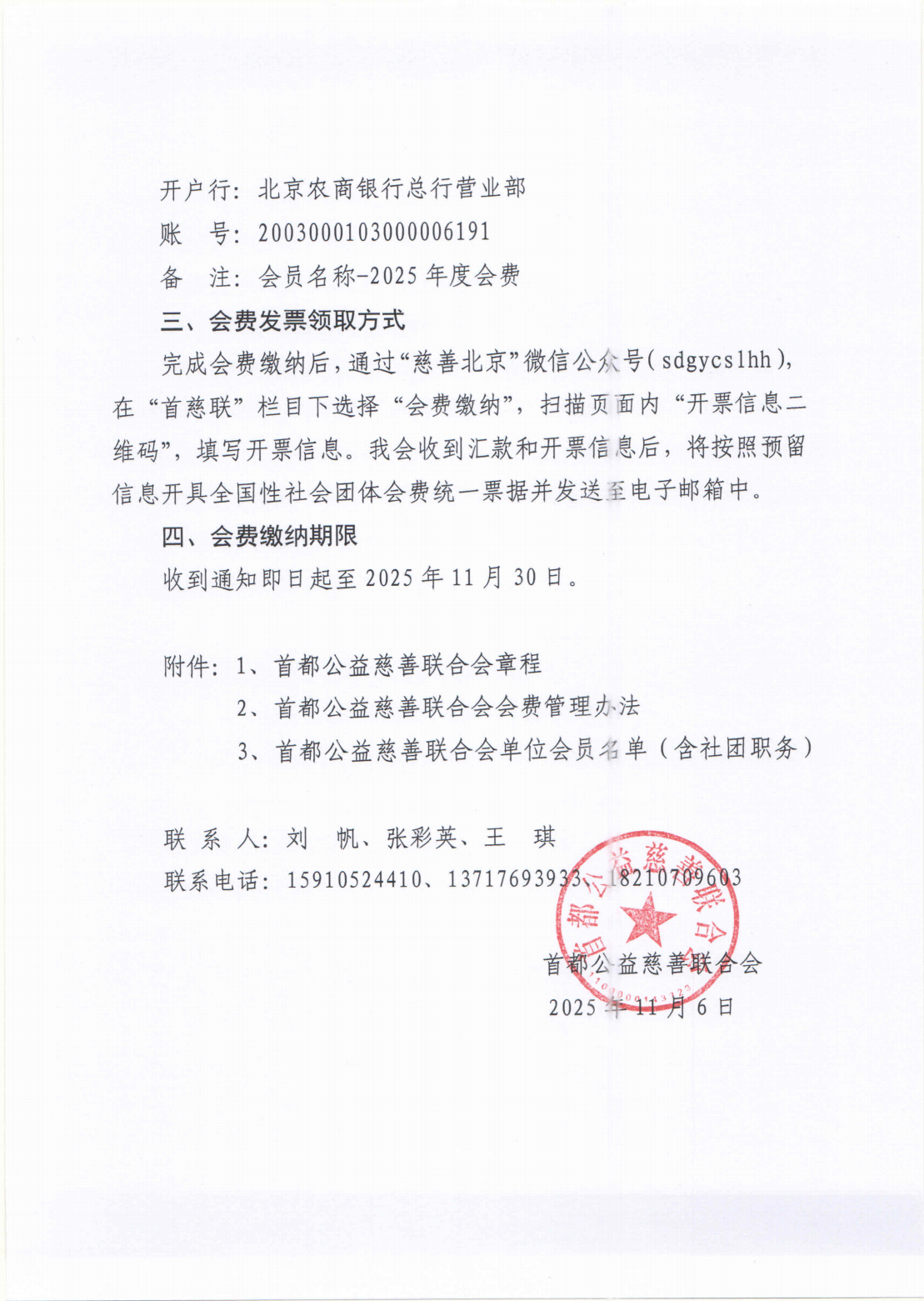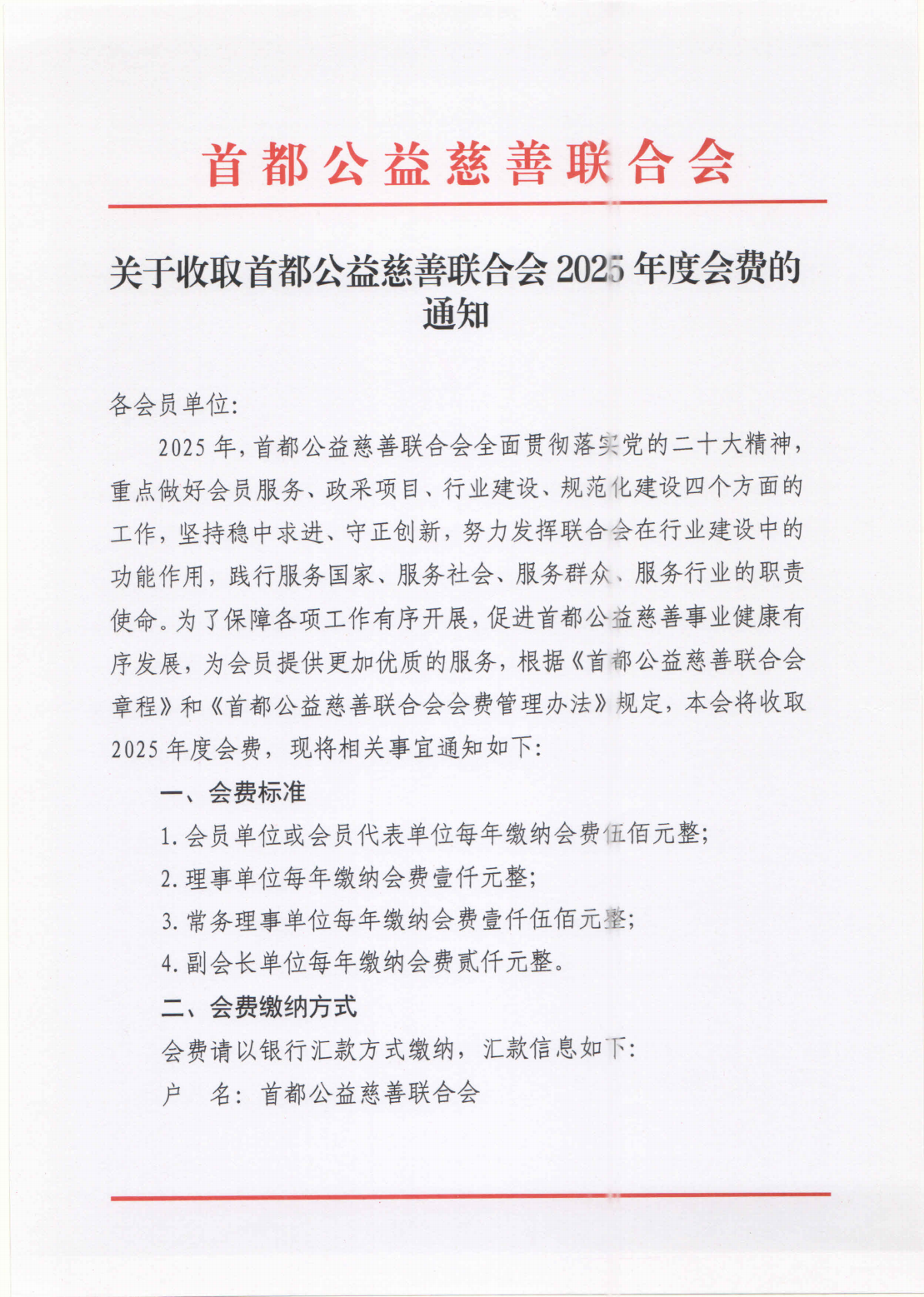 > 关于收取首都公益慈善联合会2025年度会费的通知